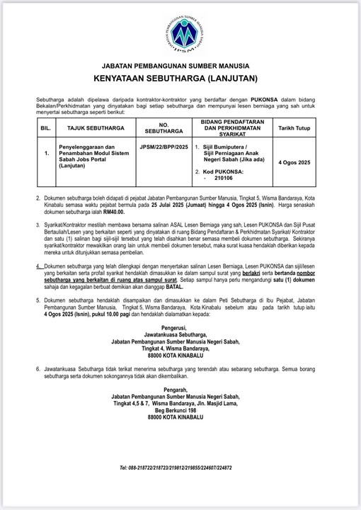 Kenyataan Sebutharga (Lanjutan) - Penyelenggaraan dan Penambahan Modul Sistem SJP