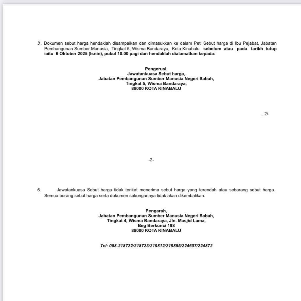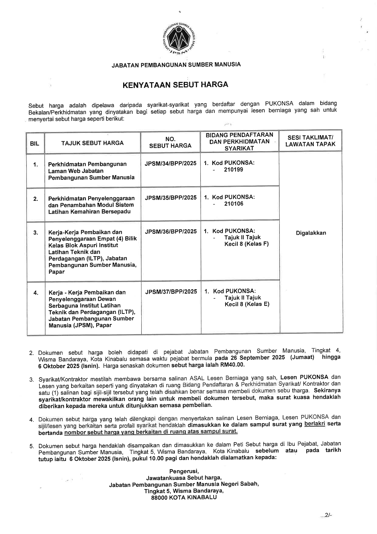 Kenyataan Sebutharga - Perkhidmatan Pembangunan Laman Web Jabatan dll