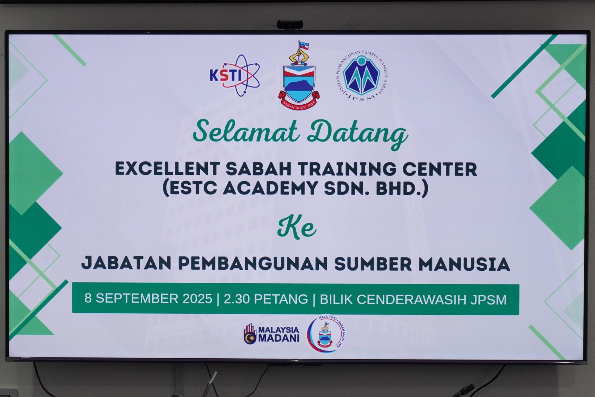 Jabatan Pembangunan Sumber Manusia (JPSM) menerima kunjungan hormat daripada ESTC Academy Sdn. Bhd. yang diketuai oleh Encik Aaron Mark, Pengurus Pembangunan Perniagaan