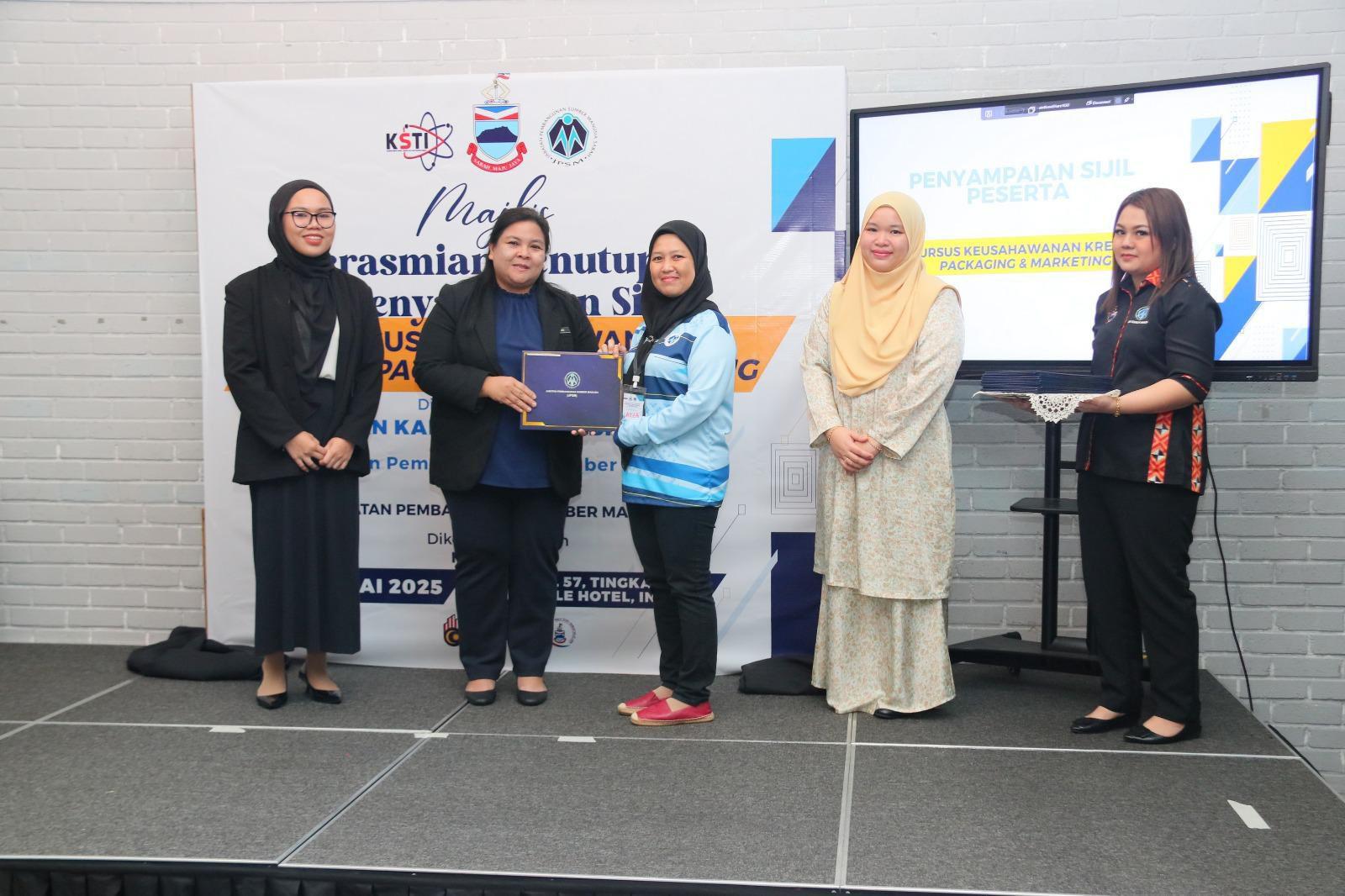 Sesi Majlis Perasmian Penutupan dan Penyampaian Sijil bagi 20 peserta Kursus Keusahawanan Kreatif (Packaging & Marketing) disempurnakan oleh Yang Berbahagia, Puan Kamsiah Binti Ibrahim selaku Pengarah Jabatan Pembangunan Sumber Manusia.