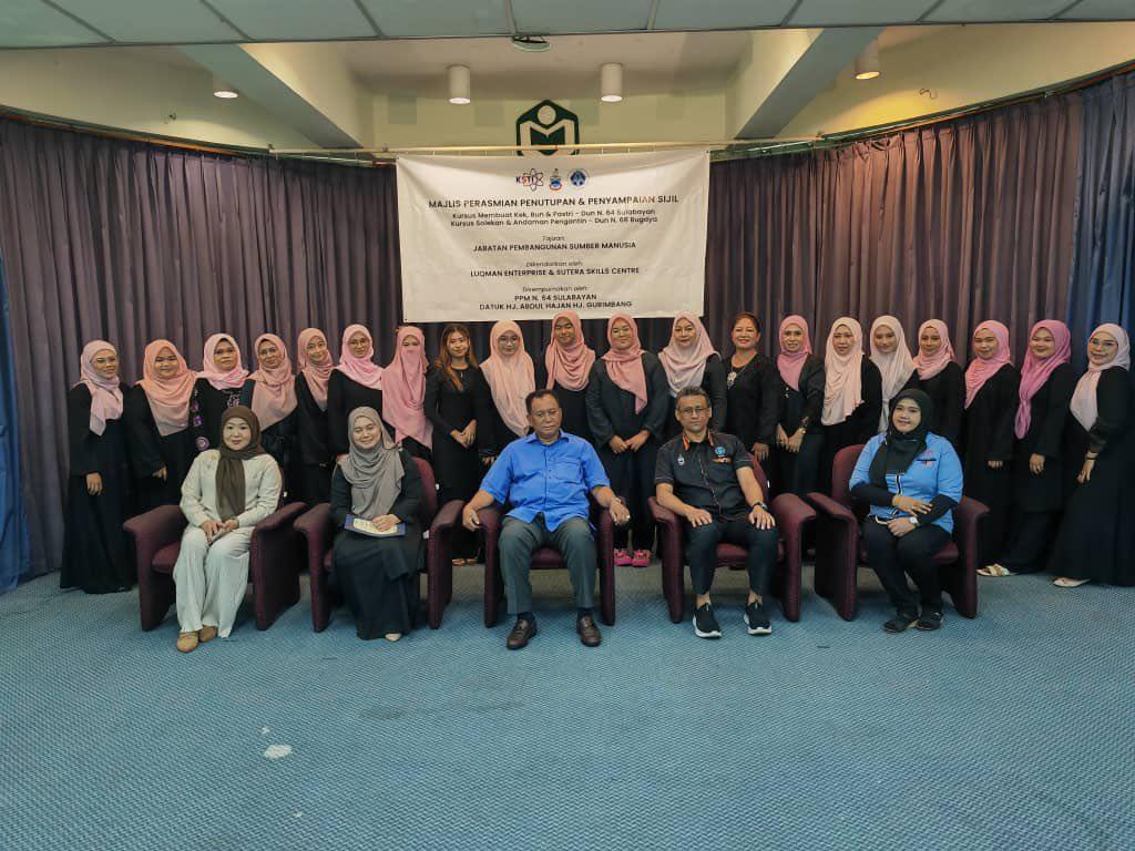 Sesi Majlis Perasmian Penutupan dan Penyampaian Sijil bagi 40 peserta Kursus Kek Bun dan Pastri (N64 Sulabayan) dan Kursus Solekan dan Andaman Pengantin (N66 Bugaya) disempurnakan oleh YBhg. Datuk Haji Abdul Hajan bin Haji Gurimbang Pemimpin Pembangunan Masyarakat Dun N64 Sulabayan di Dewan Perpustakaan Negeri Sabah Cawangan Semporna.