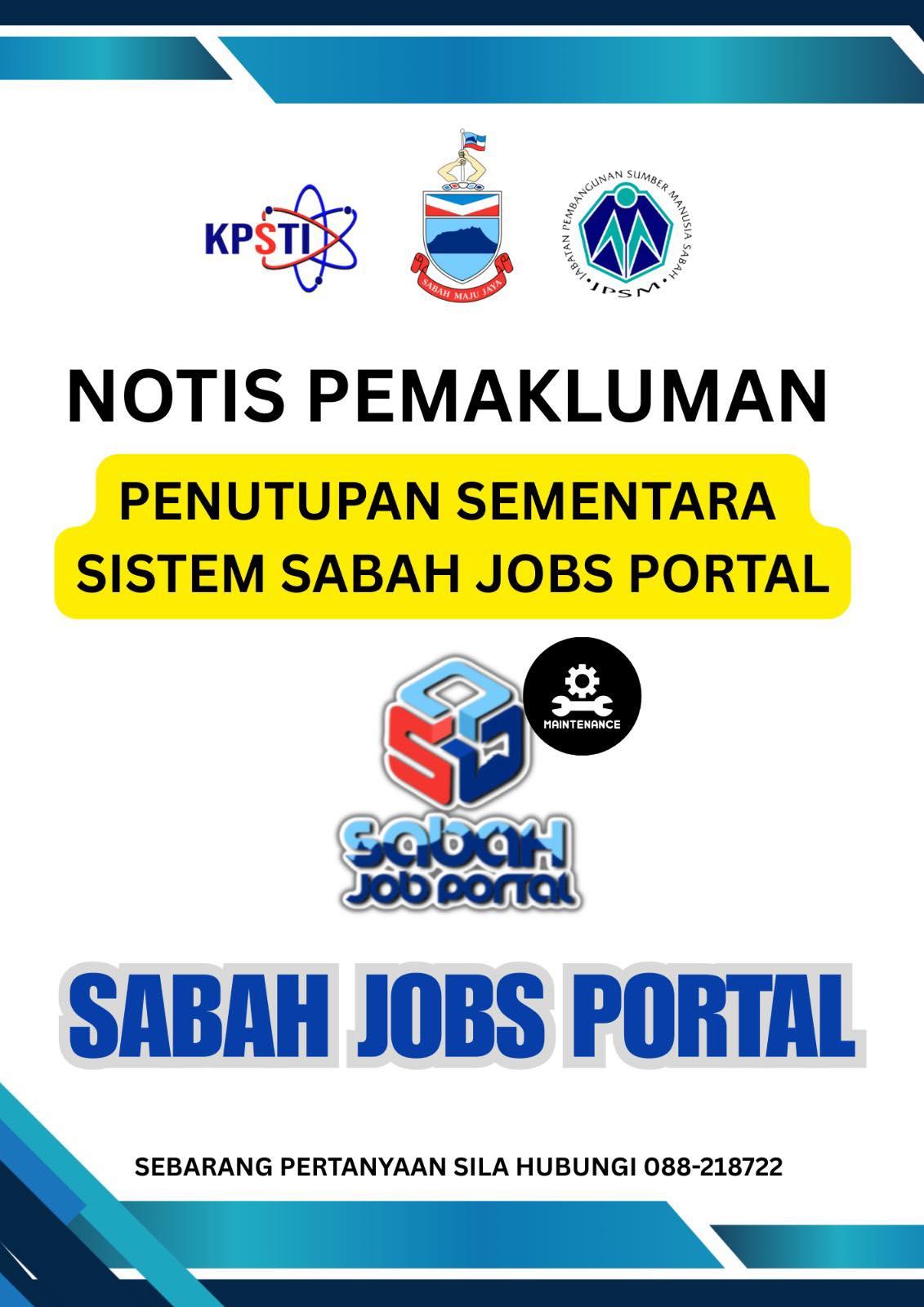 Notis Pemakluman - Penutupan Sementara Sabah Jobs Portal
