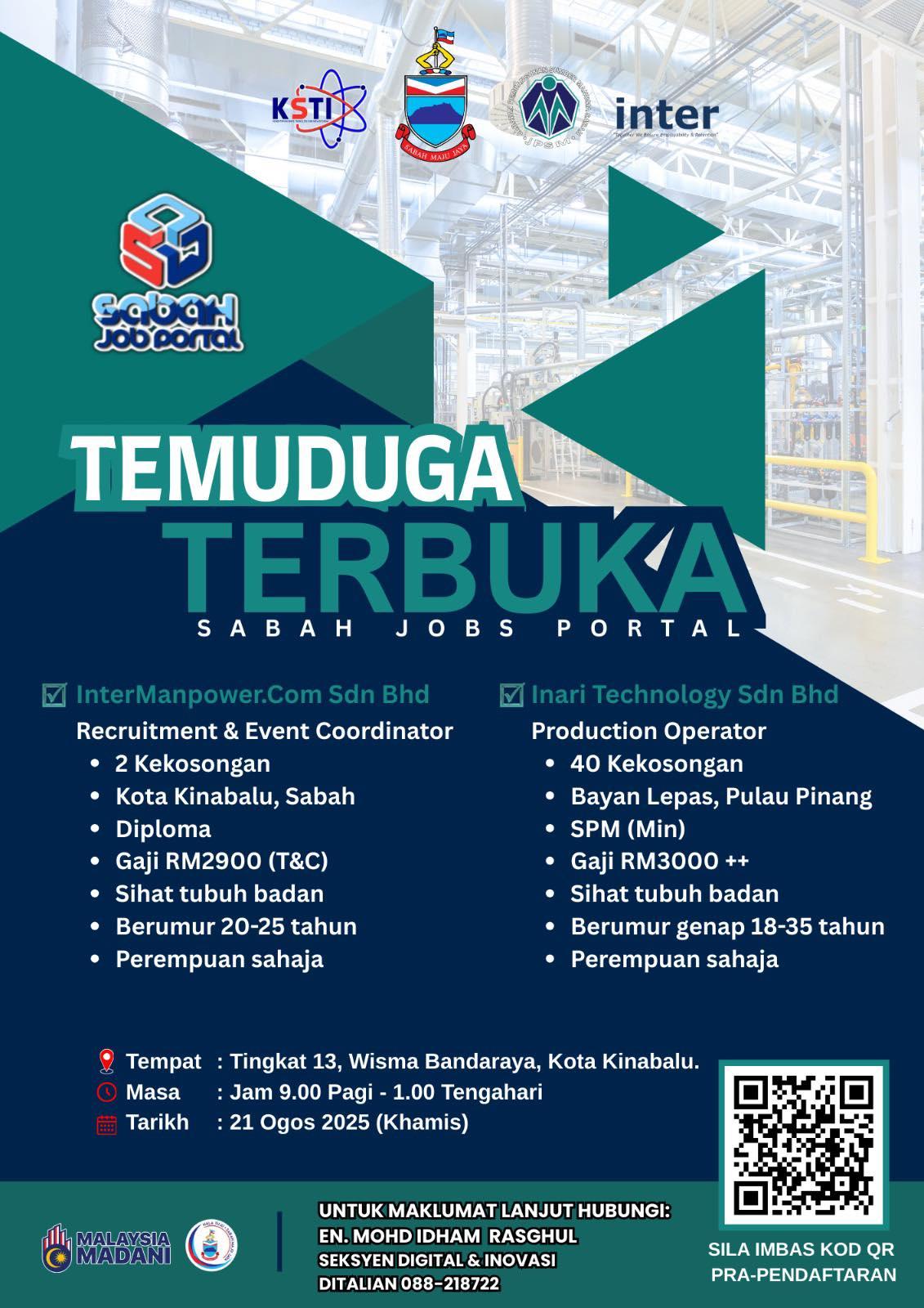 Jom sertai Temuduga Terbuka Sabah Jobs Portal dan rebut peluang bekerja bersama syarikat hebat!
